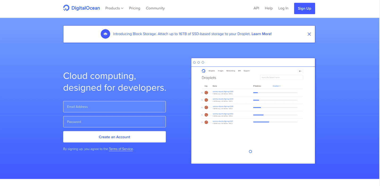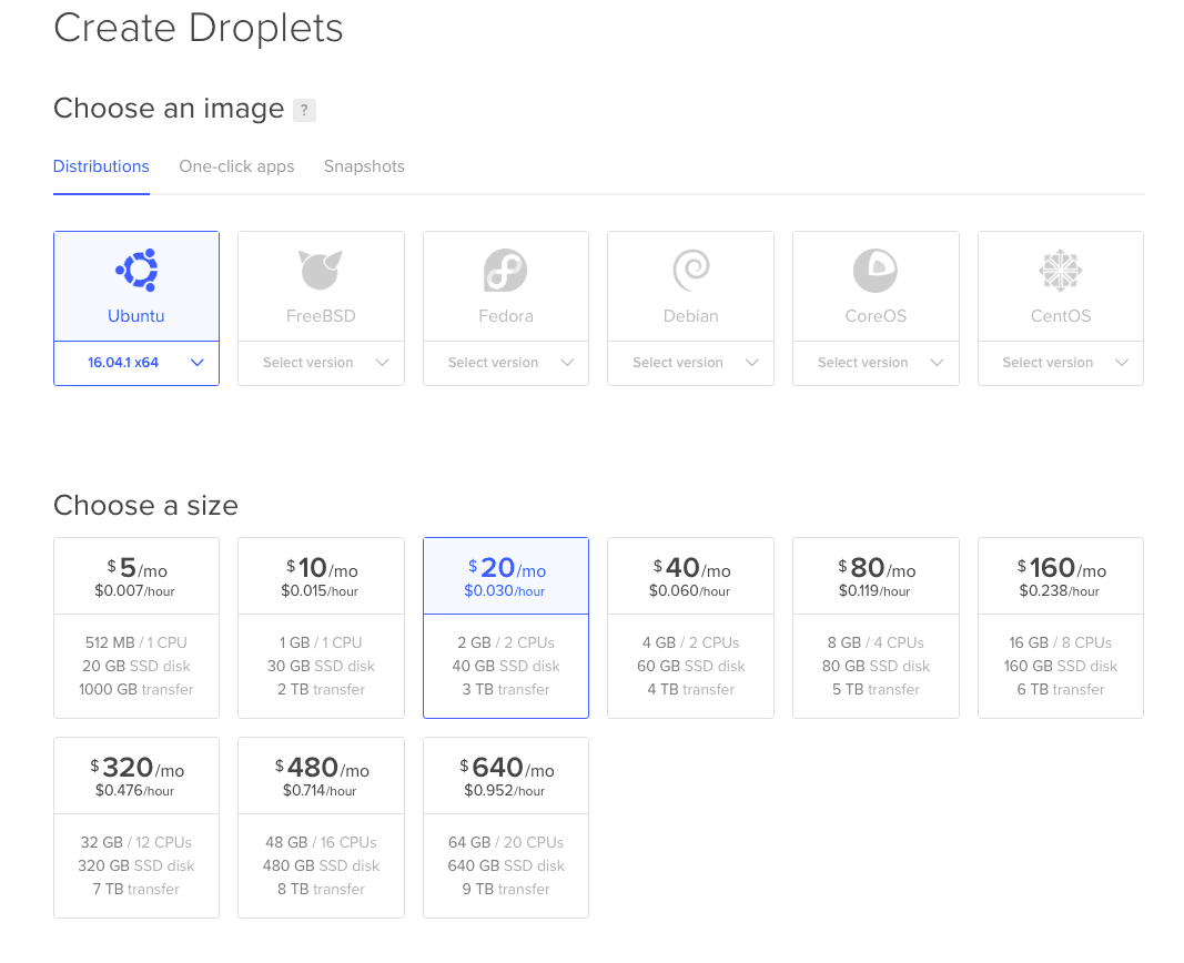 Each virtual server is called as Droplets in DigitalOcean. Creating a droplet means creating a virtual server in DigitalOcean.