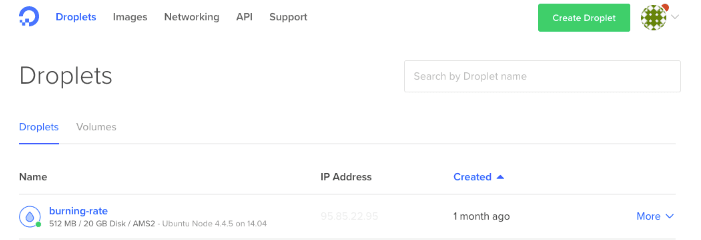 After creating the droplets, we can start to use the ip address for this droplet to place our files.