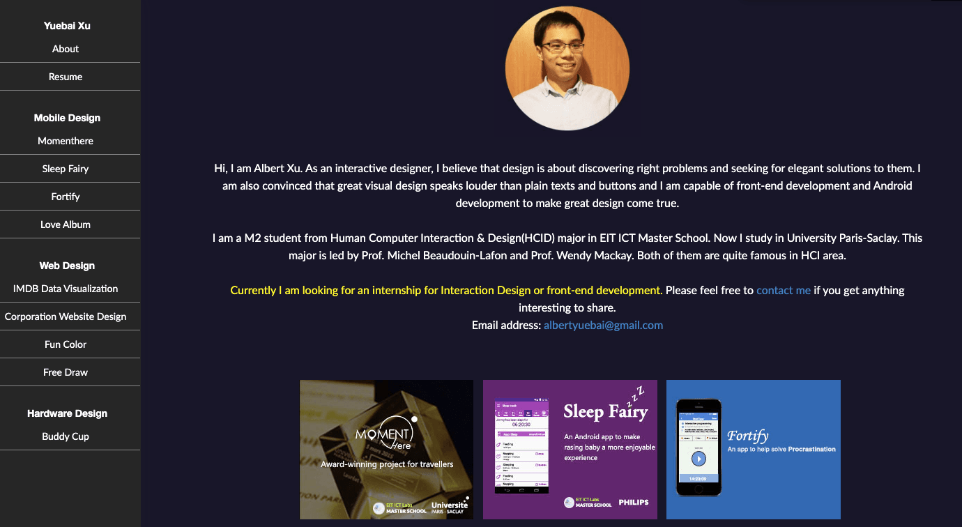 I can remember my first portfolio website when I was still a student from the master of "human computer interaction". The site is pure html, css and es5. At that time, for me front-end development is putting content in html, fixing css problems and adding simple interactions with javascript.