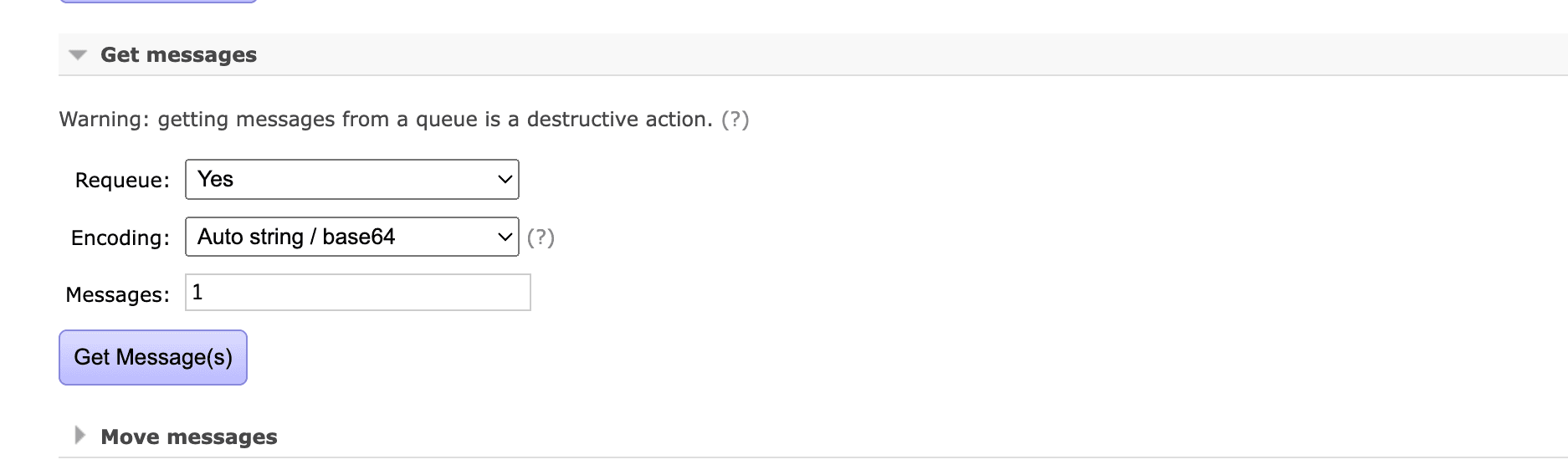 Before sending the message, let's remove any real consumer for this message, which means, do not start the worker yet to handle the message. This will make sure that the message will be not handled and stay as queued messages.